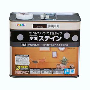 水性塗料・ペンキ アサヒペン 水性ステイン ウォルナット 2L 浸透性、耐光性に優れ、木目が映える。木製家具や屋内の木部に | |