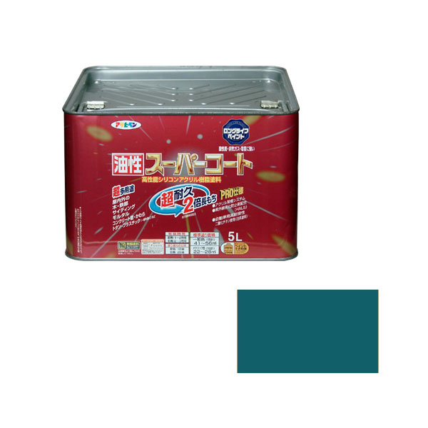アサヒペン 油性スーパーコート 5L (オーシャンブルー) ( 屋内外 フェンス 門扉 看板 木部 FRP アクリル 硬質塩ビ プラスチック 鉄 ドア 雨戸 ガーデン 家具 木製品 スレート瓦 セメント瓦 トタン屋根 塗料 ペンキ 油性 トタンベイ 塗装 ) | |