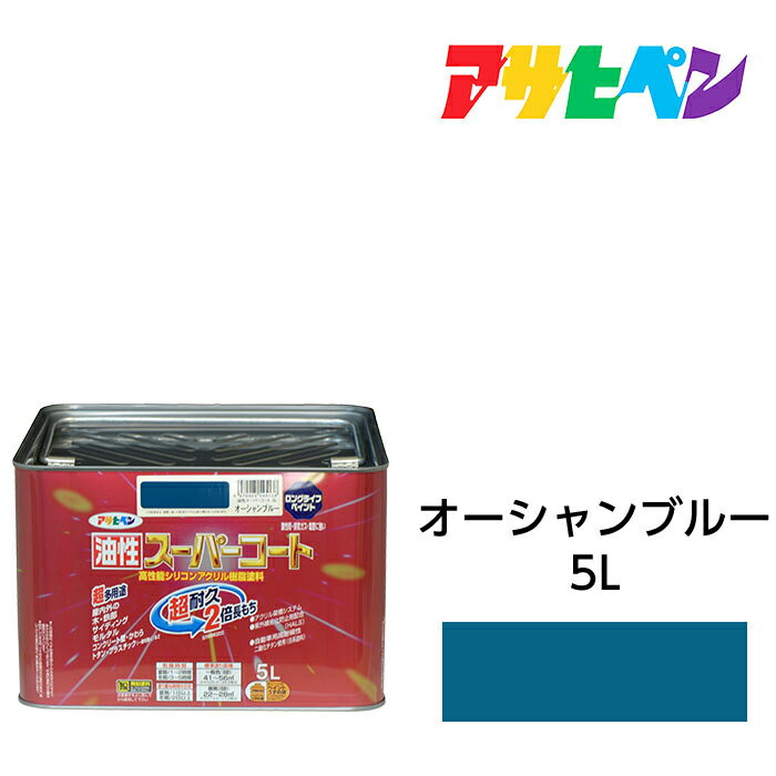 【11/1限定】 ポイント最大20倍&最大400円クーポン配布|油性塗料・ペンキアサヒペン油性スーパーコートオーシャンブルー(5L)屋内外で使える超多用途。酸性雨、塩害、排気ガス、紫外線にも強い | |