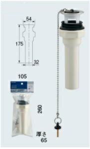 カクダイ,オーバーフロー穴付洗面器専用,横穴付排水栓(呼び32mm,ゴム栓/テール管付,樹脂製)洗面排水部品,433-520 | |