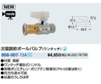 カクダイ 流量調節ボールバルブ(ワンタッチ) 〔品番:656-007-13A〕 | |