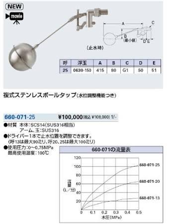 カクダイ KAKUDAI【660-071-25】複式ステンレスボールタップ(水位調整機能つき) | |