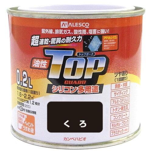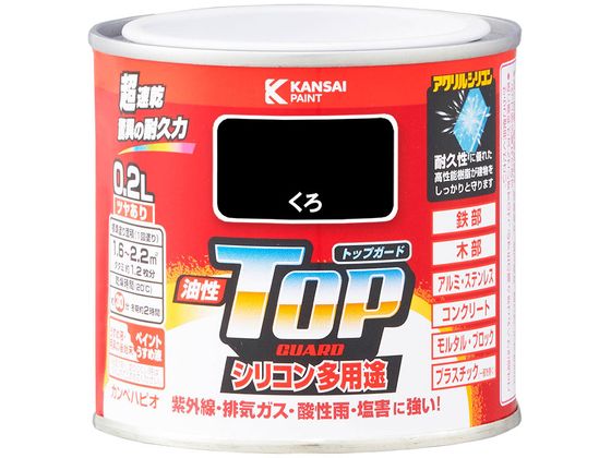 カンペハピオ ペンキ 塗料 油性 つやあり シリコン樹脂 多用途 超速乾 さび止め剤入り トップガード くろ 0.2L 油性塗料 | |