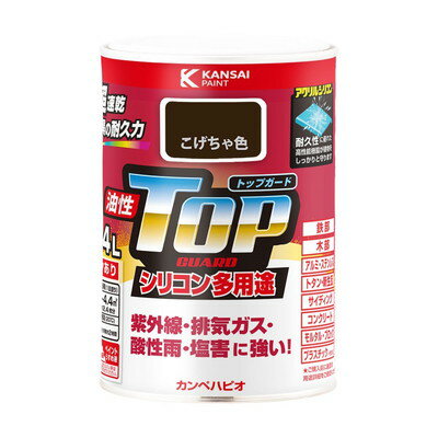カンペハピオ ペンキ 塗料 油性 つやあり シリコン樹脂 多用途 超速乾 さび止め剤入り トップガード こげちゃ色 0.4L 油性塗料 | |