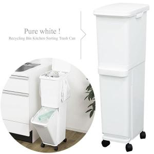 分別 ゴミ箱 ダストボックス 約幅24cm スリム 2段 ホワイト 容量約34.5L 上段19.5L 下段15L ふた付き キャスター ネオカラー | |