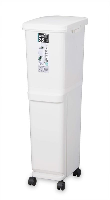ごみ箱 トンボ ネオカラー分別スリム2段35 34.5L ホワイト | 分別 ダストボックス 2段 縦型 キャスター 移動 | |