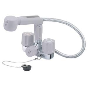 三栄水栓製作所 ツーバルブスプレー混合栓(洗髪用) 節水水栓 ホース露出タイプ ゴム栓・一時止水機能付 ホース長さ:0.5m U-MIX K3104VR-LH | |