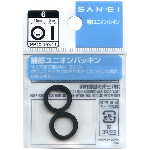 【メール便可】SANEI 三栄水栓 補修ユニオンパッキン PP40-15×11 直径15mm 内径11mm 2個入 | |