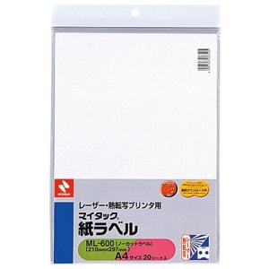 【ノーカット×20シート・A4判】ニチバン/粘着ラベル マイタック(R)宛名用紙ラベル(ML-600) レーザー・熱転写プリンタ用/NICHIBAN | |