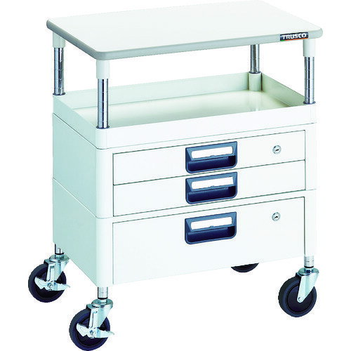 TRUSCO ツールワゴン フェニックスワゴン 省音 600X400 H740 引出付 天板付 ホワイトPEW-761VXT-W 1台(6601-1146150) | |