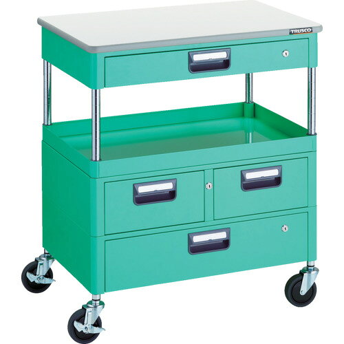 【別途送料あり】トラスコ中山(TRUSCO) TRUSCO ツールワゴン フェニックスワゴン 省音 750X500 H880 引出付 天板付 ヤンググリーン 【品番:PEW-971VWZT-YG】 | |