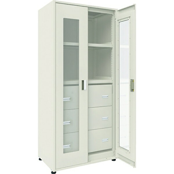 TRUSCO M3型ユニット中量棚 両開きアクリル扉・背・側パネル付 H2100XW900 引出3段付 単体 M3-U7364H3-SGA 1台 ■▼116-4736 | |