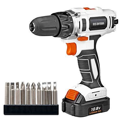 アイリスオーヤマ 電動ドライバー ドリルドライバー 10.8V 充電式 軽量 LEDライト 正逆転切替 JCD28 ビット10種・充電器・バッテリー付き 【共通バッテリーシリーズ】