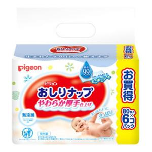 ピジョン【おしりふき詰替用】Pigeonおしりナップやわらか厚手仕上げ純水99%80枚x6個パック | |